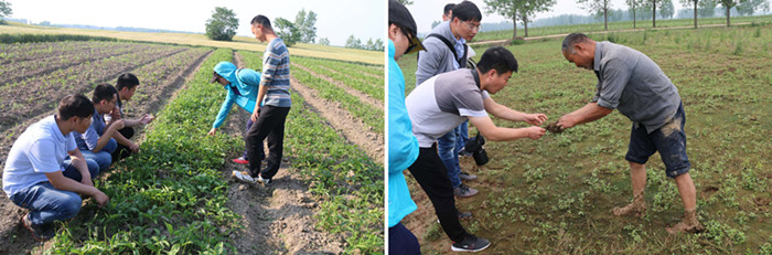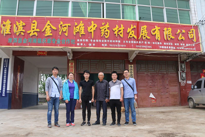 在淮滨县金河滩中药材发展有限公司,服务团队就猫爪草、夏天无的生产情况和本年度市场行情进行了调研,并深入田间地头与公司药农就2018年初极端天气对猫爪草生长情况的影响进行了深入交流,对收获期猫爪草病害侵染情况进行了调查和取样,对猫爪草生产过程中防病、控病提出了建议。在息县息半夏药业有限公司,团队和企业种植基地负责人就品种布局与规模进行了讨论,调研了中药材生产溯源系统的建设情况,提出利用互联网技术加强企业CIS建设的建议,与企业一起就半夏、北沙参、迷迭香等药材的适生环境、规范化栽培技术、优势种质资源筛选、药材药用与非药功能、衍生功能的综合利用方面进行了现场讨论,就中药材生产布局提出了指导性路线图。企业邀请beat365在线平台官网师生适当农时到生产基地开展中药材生产教学与科研实习实训。