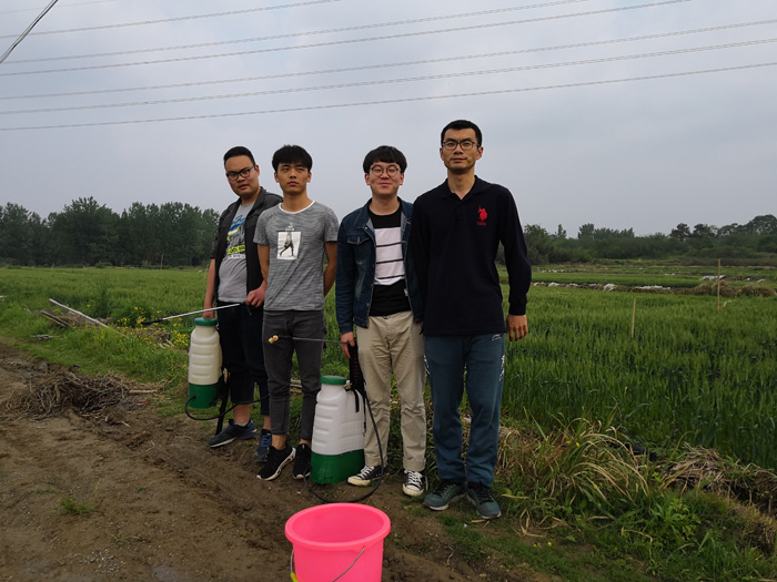 近日,正值小麦抽穗扬花期,也是小麦赤霉病预防关键时期。4月18日和24日,植保教研室陈利军和王国君老师带领所指导的植保15级本科生,先后两次到洋河农艺农机专业合作社教学实习实训场地开展本科生毕业论文“叶菌唑和戊唑醇及其复配制剂对小麦赤霉病田间药效试验”和“信阳主要作物挥发物组分分析及其对病原真菌的诱(驱)作用”。目前,试验已经完成田间小区划分、杀菌剂称量和配制、二次施药、样品采集,将进一步完成病害的调查和小麦挥发物组分的分析等工作。(植物保护教研室)