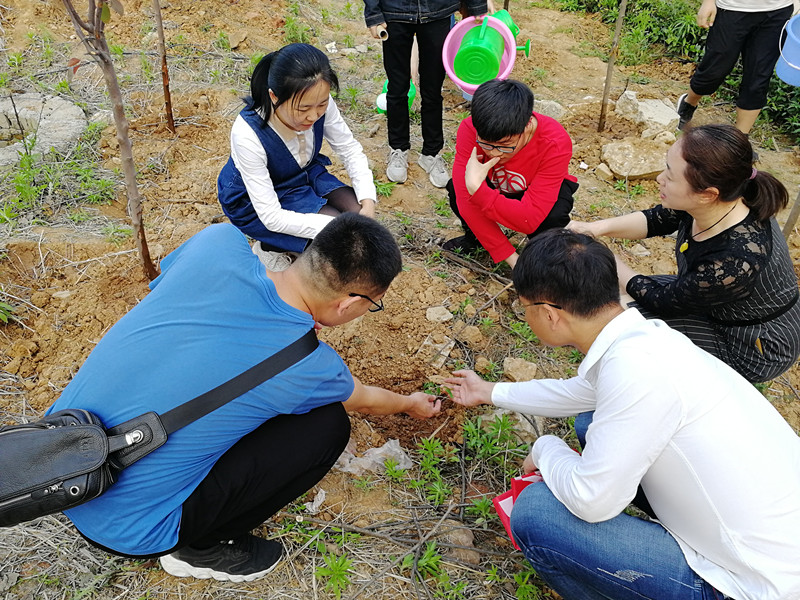 活动中,同学们在老师们的带领和讲解下,不畏酷暑,汗流浃背,浸苗、挖坑、栽种、培土、浇水,一丝不苟,干得热火朝天。充分展示了师生党员们吃苦耐劳、团结拼博,友爱互助的精神风貌和对本专业的热爱。