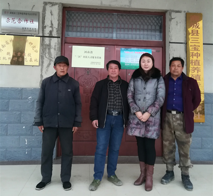 12月29-30日,药用植物专业教师张艳玲、孙万慧赴商城县吴河乡三宝种植养殖专业合作社开展三区技术服务工作和挂牌。