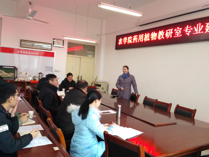 2月1日下午,我院药用植物教研室在2A316会议室开展专业建设研讨会,农学院院长尹健、党总支副书记雷振山、副院长李传保、教学秘书陈利军以及教研室专业教师参加会议,并特邀退休教授中药材种植专家胡孔峰参加指导,会议由药用植物教研室主任张艳玲主持。