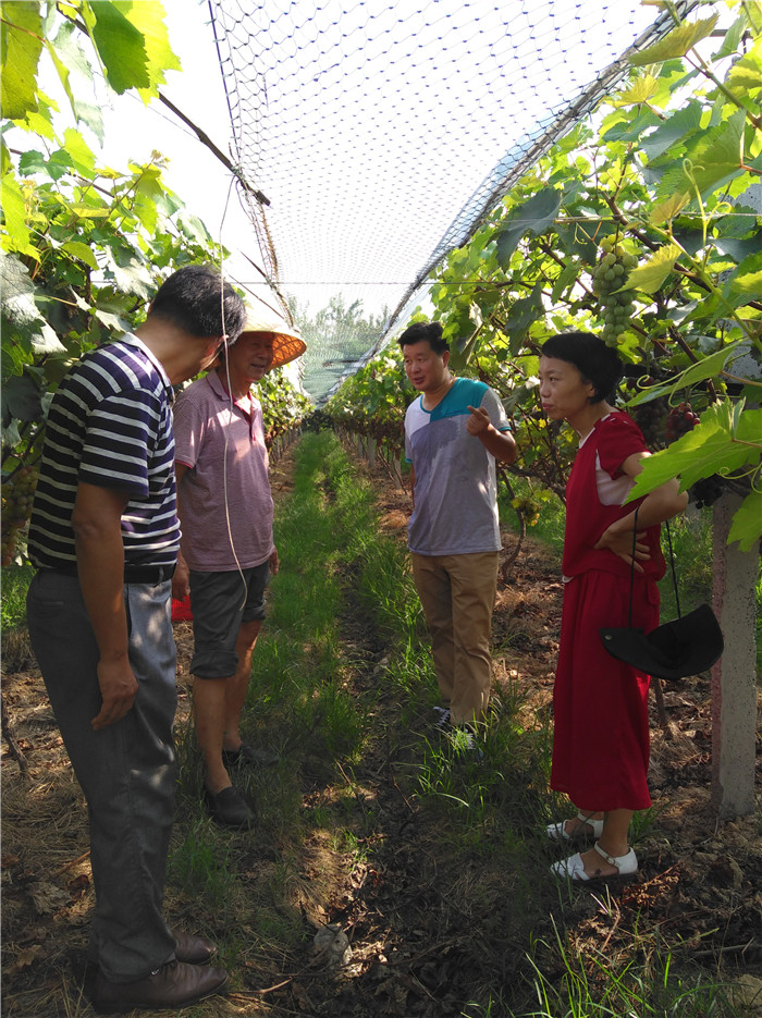 陈俊华一行和“三区”人才支持计划受援单位的技术人员进行了座谈,就合作社生产经营情况、苗木繁育和精品苗培育,栽培管理与病虫害防治等方面的问题进行了深入的交流。随后,陈俊华一行深入到公司基地现场,对葡萄栽培管理与病虫害防治提出指导意见,对精品苗培育的技术难点开展现场答疑和技术指导。