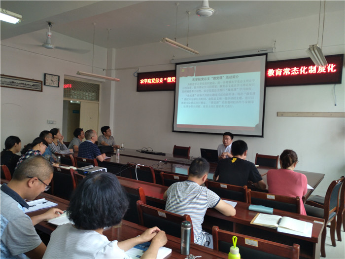 “微党课”在每个月的主题党日活动前开讲,每次“微党课”讲授30分钟左右时间,由院总支统一提供讲授主题,也可以根据实际情况自行确定。“微党课”采取邀请校内外专家辅导、院领导带头讲授、党员主动汇报的形式进行。