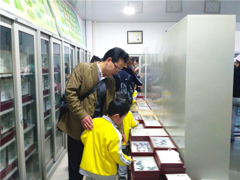 本次参观活动得到农学院各级领导的重视。活动前我院提前安排相关教师对标本馆卫生和安全等方面进行了检查,并对标本馆进行了开门通风处理。羊山实验小学附属幼儿园全体师生的到来受到了我院领导热情周到地接待。幼儿园的小朋友们来到标本馆都非常兴奋,很多人第一次见到如此多的昆虫,被美丽的蝴蝶、奇特的甲虫所吸引。陪同的家长和老师们也情不自禁地拿起手机拍照。农学院安排了潘鹏亮老师对我院标本室基本情况进行了简要介绍,并欢迎各位老师、小朋友和家长们经常来参观。