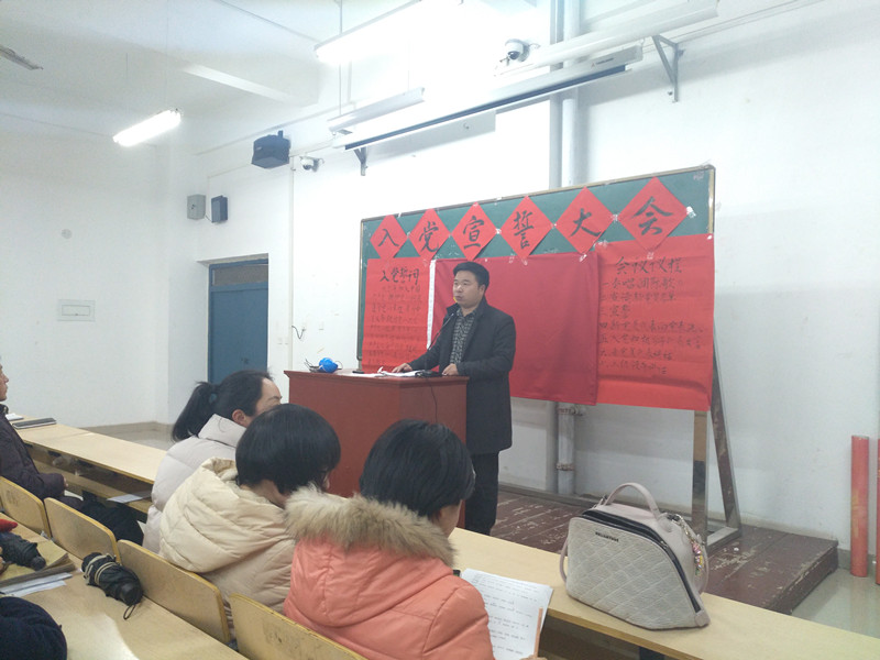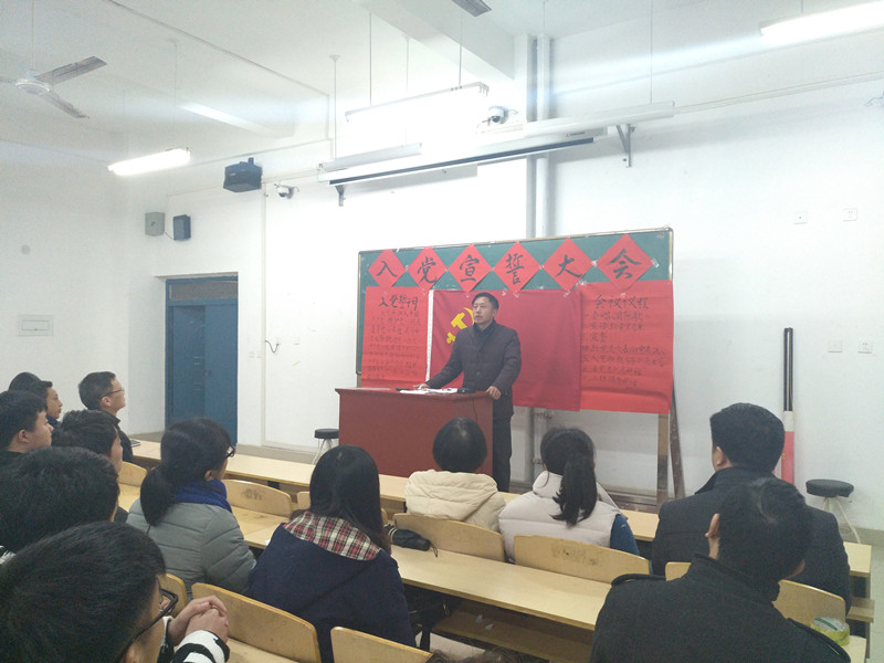 12月20日下午,我院党总支在二教206举行新党员入党宣誓大会,全校160名新党员宣誓,外语学院党总支书记张志强、茶学院党总支书记袁丁、农学院党总支副书记雷振山和部分学院团总支书记、学工组成员等参加了此次会议。会议由我院党总支副书记雷振山主持。