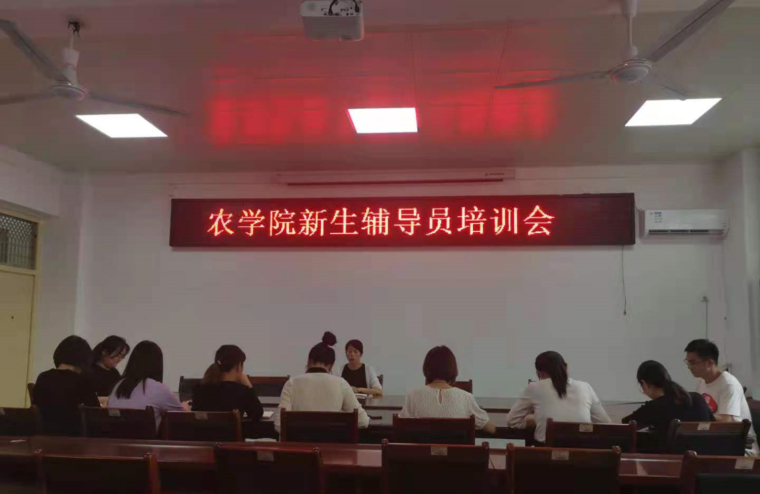 为提升我院新生辅导员的业务水平,做好2021年迎新工作,8月28日下午,我院开展新生辅导员培训工作会议,会议由学院党总支副书记王付娟主持,团总支书记刘书含、院专职辅导员以及2021级新生辅导员参加。
