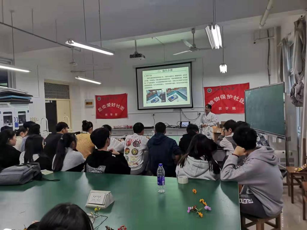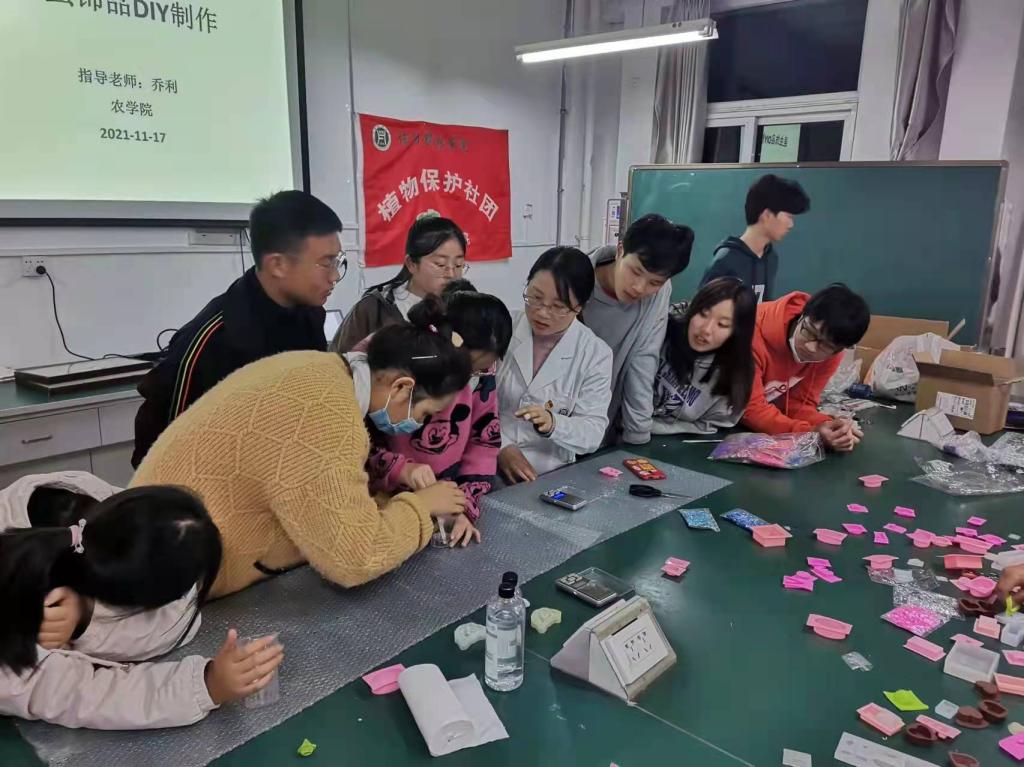 2021年11月17-19日,植物保护教研室乔利博士带领植物保护社团和昆虫爱好社团于实验楼2A404开展主题为“昆虫饰品DIY制作”的第二课堂活动。此次活动采用树脂标本制作的方式,把自己喜爱的昆虫或创意图案浇筑进去做成永久标本。
