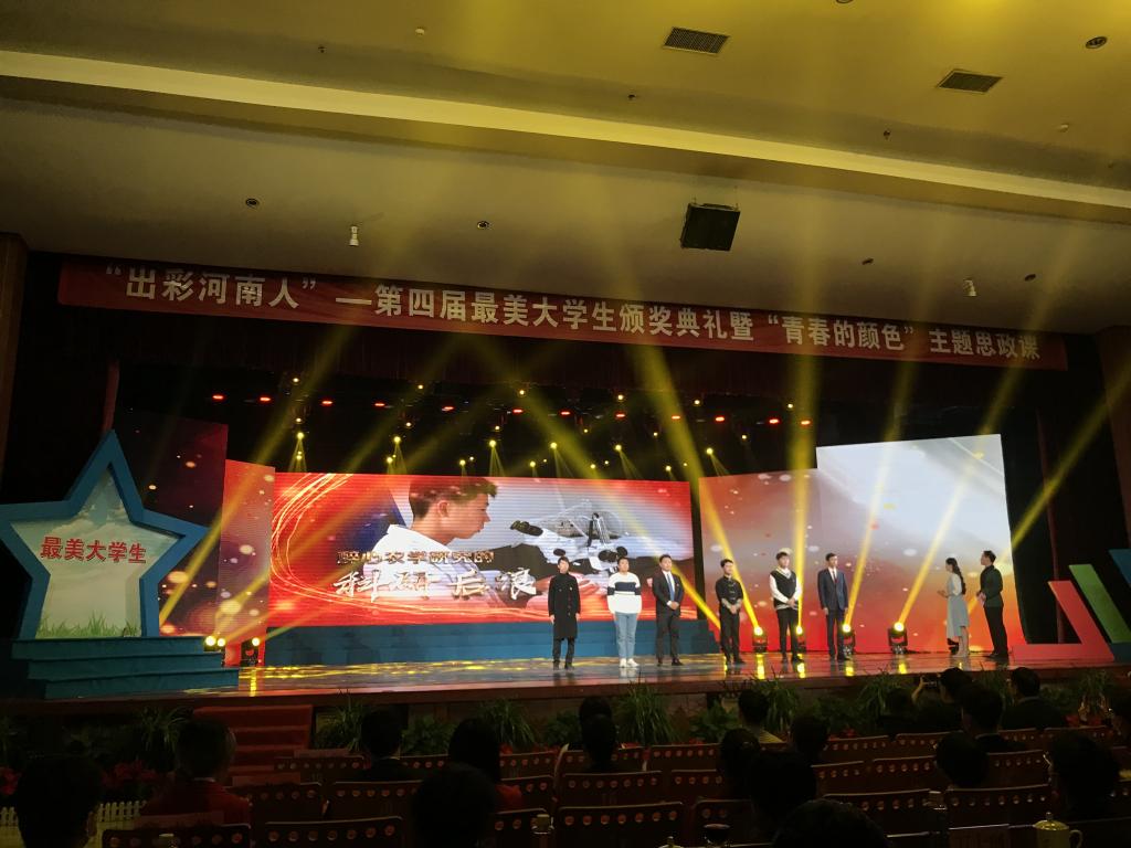 12月17日,“‘出彩河南人’——第四届最美大学生颁奖典礼暨‘青春的颜色’主题思政课”活动在郑州西亚斯学院歌剧院教学剧场举行,我院2017级植物保护专业学生林兴雨获得“出彩河南人”第四届最美大学生宣传推介活动优秀奖。