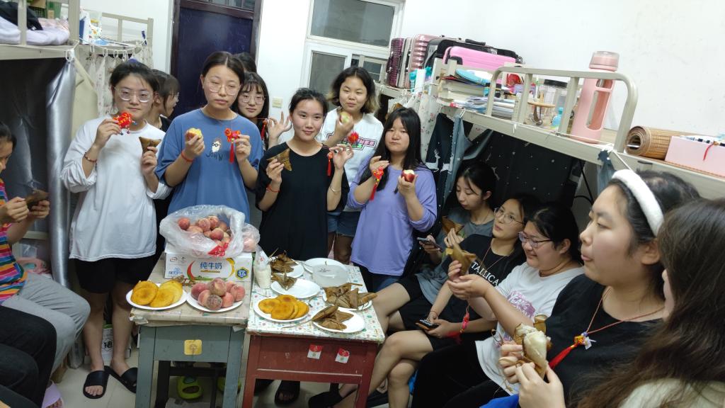 学院领导和老师首先深入学生宿舍为准备专升本考试的54名学生送去粽子、糖糕、桃子、牛奶及香包等礼品,与同学们齐聚一堂,共度佳节。