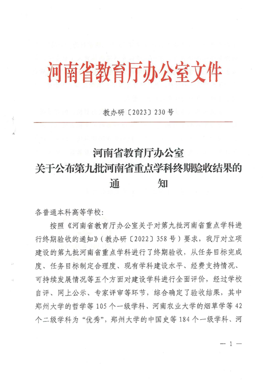 日前,河南省教育厅印发《关于公布第九批河南省重点学科终期验收结果的通知》(教办研〔2023〕230号),我院省重点(培育)学科——农业昆虫与害虫防治顺利通过终期验收。
