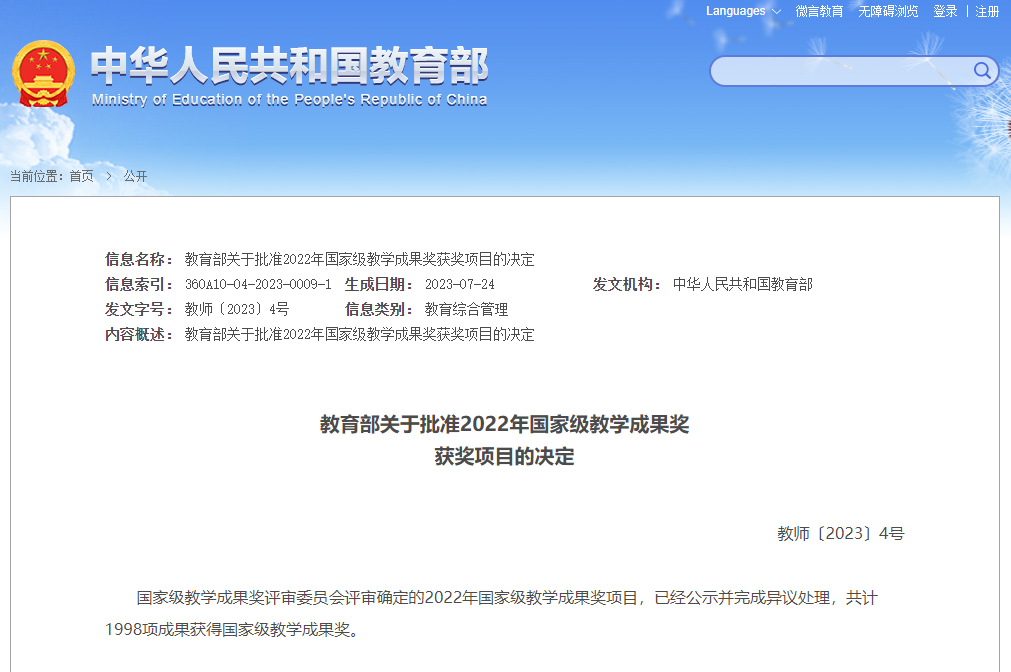 【喜讯】我院获得国家级教学成果奖