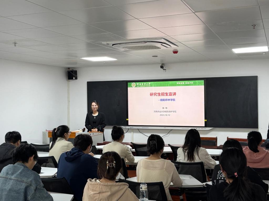 10月11日-16日,为了增强我院学生考研信心,及时了解报考院校情况,提升学生考研报考率,我院联系并组织开展多场研究生报考指导讲座。河南农业大学植物保护学院、河南科技大学农学院(牡丹学院)、南阳师范学院水资源与现代农业学院、安徽科技学院相关领导老师先后莅临我院作考研指导报告。