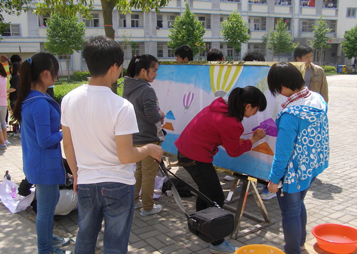 4月26日下午,由beat365在线平台官网举办的以“五一劳动节”为主题的展板比赛在小广场举行。全校共有14个代表队,我系宣传部五名选手积极参加。
