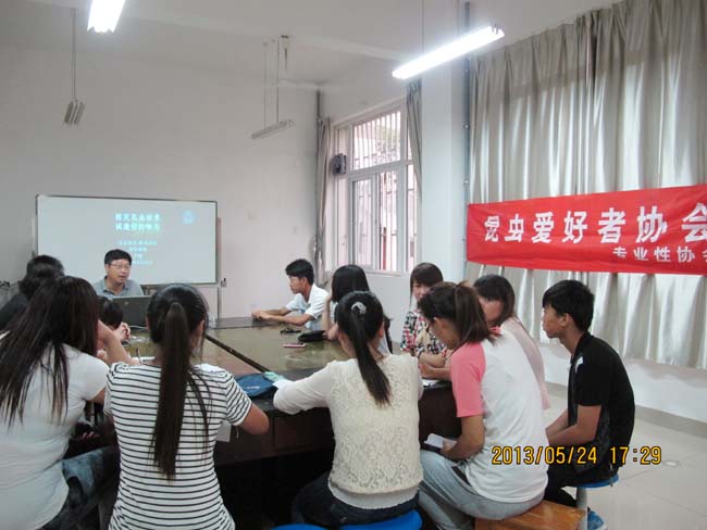 5月24日下午,在2A106教室,指导教师尹健为昆虫协会和植保协会会员举办了“探究昆虫世界诚邀你的参与”讲座。尹老师向会员们介绍了自己目前正在开展的部分研究课题内容,邀请大家积极参与有关工作。