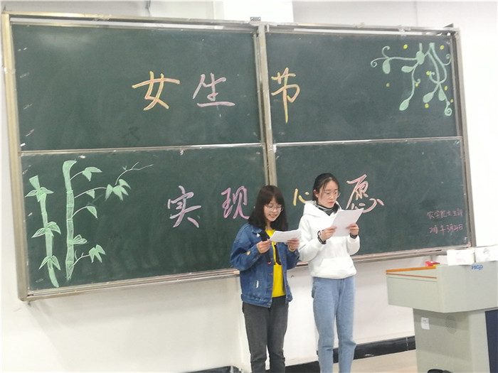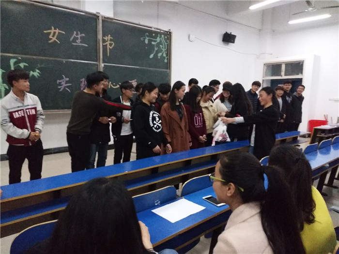 为配合女生节活动,丰富我院在校女生的校园文化生活,我院举办了一系列富有青春色彩、展现当代女大学生风采的活动。3月24日晚,我院在一教E102教室举办“女生节实现心愿”活动,大一学生积极参加。