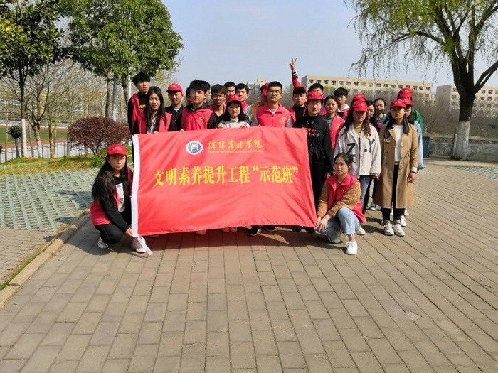 2019年3月27日中午,农学院“文明素养提升工程示范班”--植物保护(航空植保技术)2018-2班举办了“美丽校园,你我共创”志愿者活动。示范班全体同学参加了本次活动。