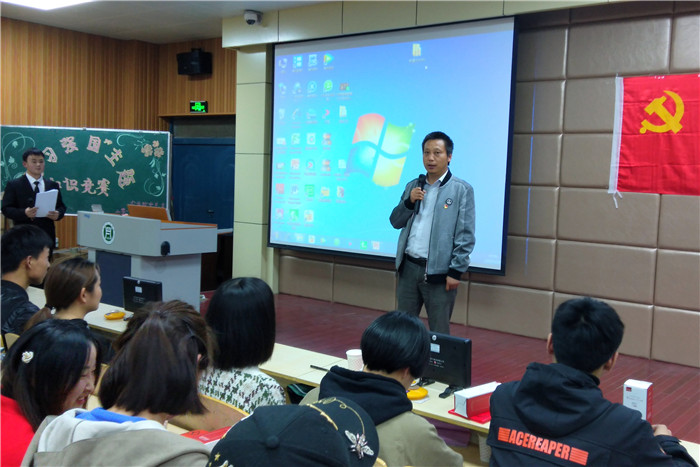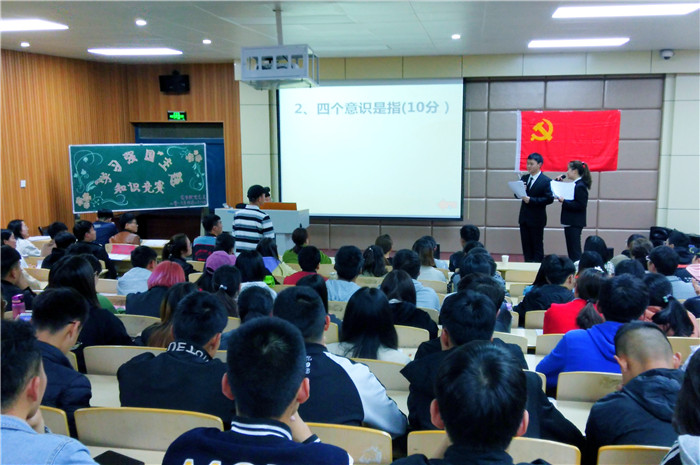 2019年4月28日晚,我院党总支在二教204举办“学习强国”知识竞赛。副院长李传保,组织员王付娟、团总支书记杨林,教师党员卫云飞、徐运飞、刘书含、金明慧及我院学生党员、预备党员、发展对象、积极分子200多人参加活动。本次活动由吴雨辰、余祥祥同学担任主持。