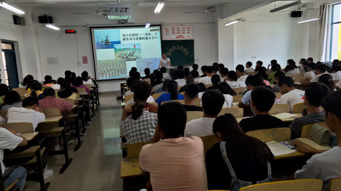 2019年9月30日中午,我院分别在二教203、204开展了入学教育——国防教育。本次活动由院武装专干唐明明老师担任主讲人,19级同学参与。
