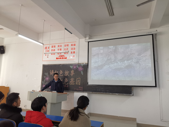 2019年12月13日中午,我院在一教A103举办“讲红色故事,传红色基因”的活动。本次活动由博士党员季新老师担任主讲人,19级同学参加。