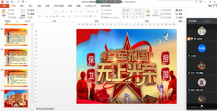为加强当代大学生国防意识,普及国防知识,鼓励大学生积极投身到国防建设中去。2020年5月22日,我院召开了国防教育暨征兵工作宣讲会。主讲人由学院武装专干唐明明担任。