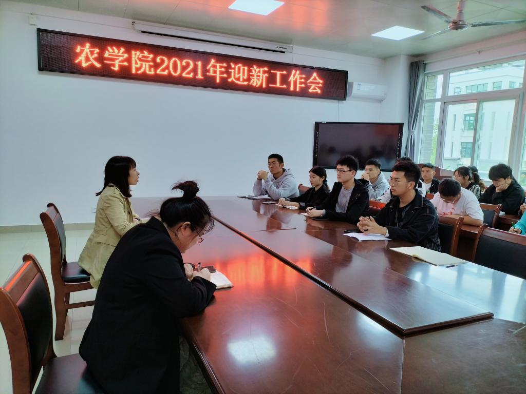 院学生会主席裴奇隆同学介绍了迎新工作中各类分工与值班等具体安排,带头表示要展现出良好的学生干部形象,同时也让大家抓紧为即将开始的学生干部纳新做好准备。