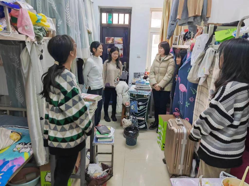 2023年2月16日中午12点,农学院党总支副书记王付娟带领刘娟、刘红云、赵敏、陈磊、杨春玲等老师深入学生宿舍开展春季开学慰问活动。
