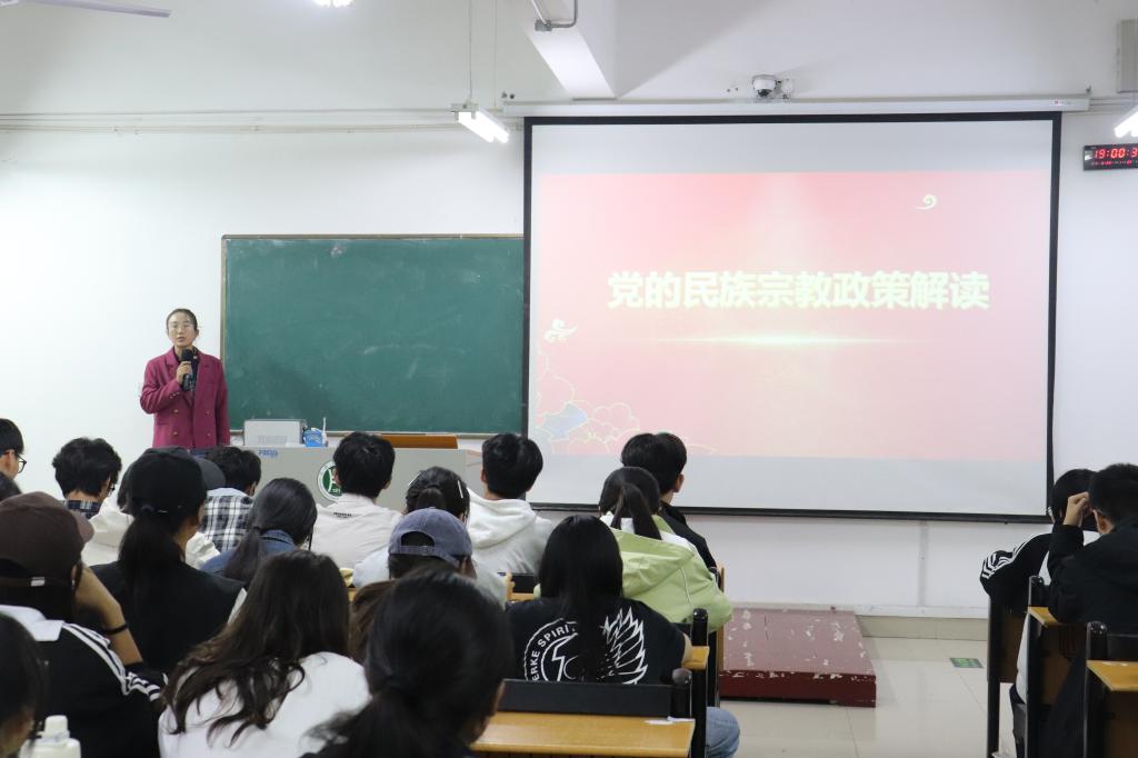 为深入学习贯彻党的民族宗教政策,铸牢中华民族共同体意识,9月29日,我院在二教101开展党的民族宗教政策解读专题讲座。本次讲座由马克思主义学院郑莉老师主讲,2025级新生参加。