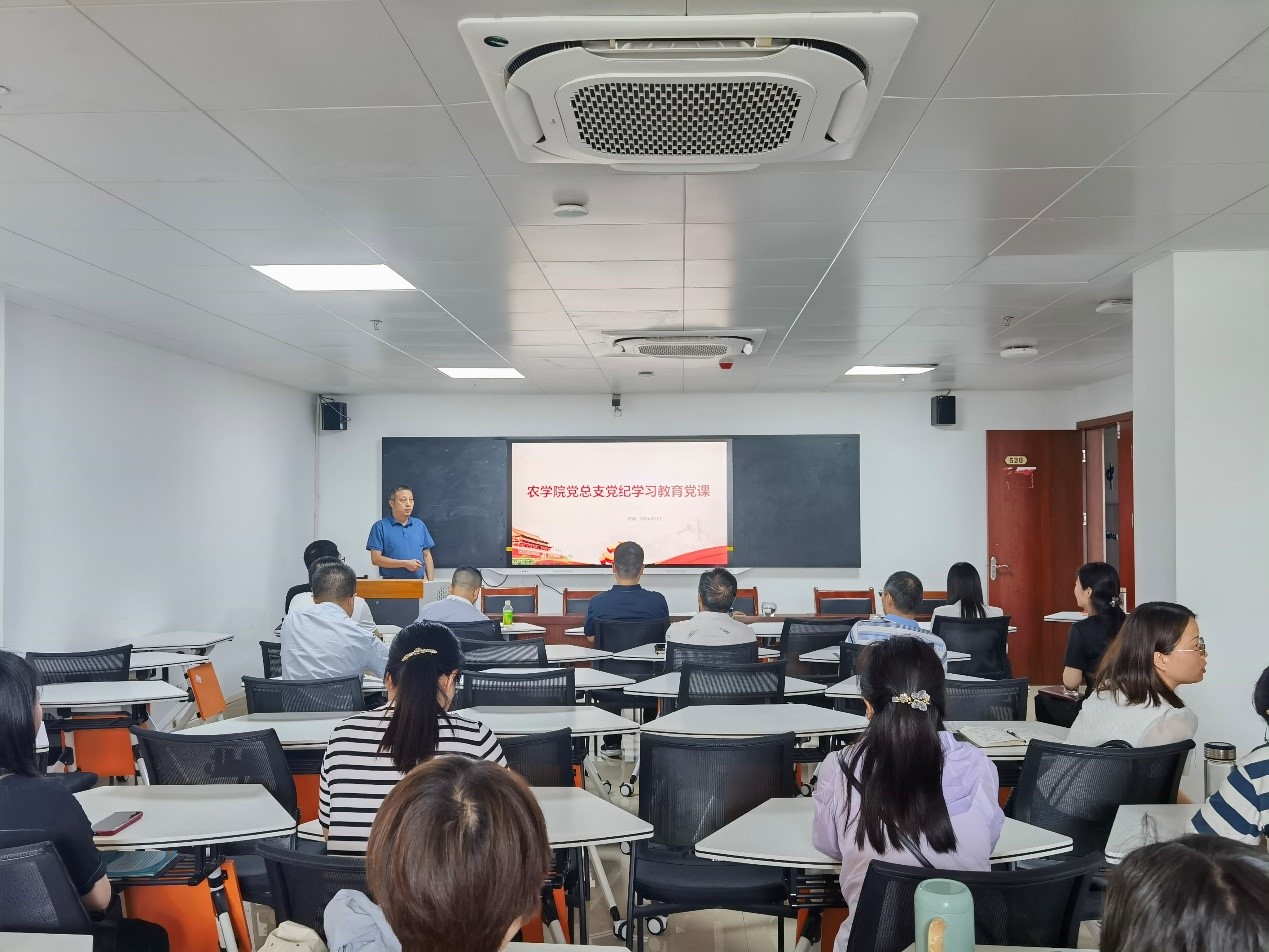 为深入学习贯彻习近平总书记关于开展党纪学习教育的重要讲话和重要指示精神,确保党纪学习教育扎实取得成效,5月21日下午,农学院党总支书记李传保以党纪学习教育为主题,为全体教师讲专题党课。