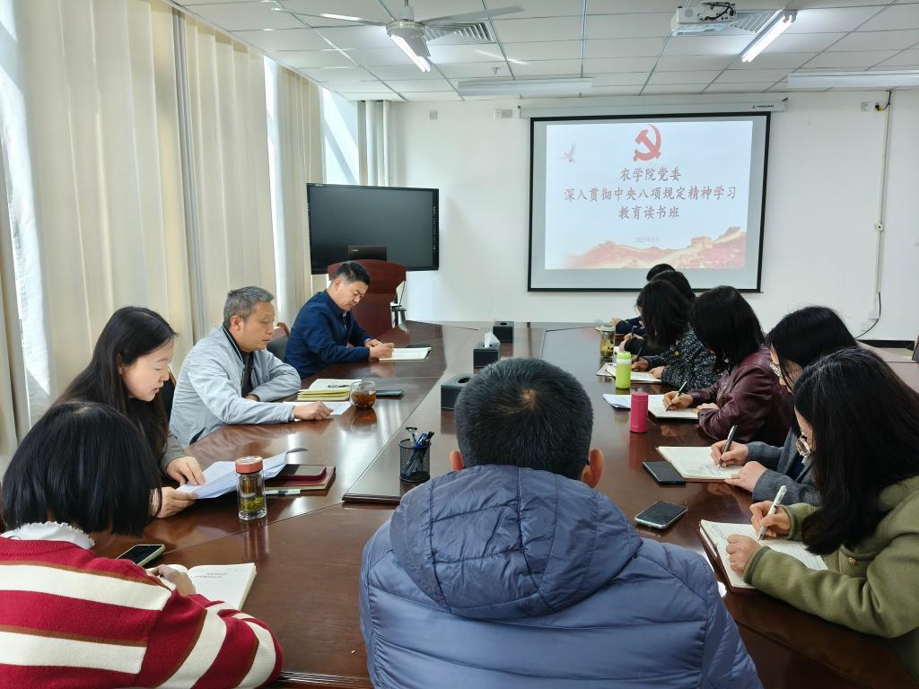 为深入贯彻落实习近平总书记关于加强党的作风建设的重要论述,3月31日—4月1日,农学院党委在3A105会议室举办深入贯彻中央八项规定精神学习教育读书班,全体科级及以上干部参加。通过集中领学、专题研讨等形式,推动党员干部深化认识、统一思想,以优良作风引领学院高质量发展。