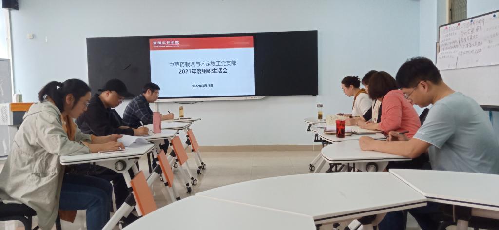 2022年3月15日下午,中草药栽培与鉴定教工党支部在智慧教室2A608召开2021年度组织生活会。会议由党支部书记张艳玲主持,农学院院长尹健和本支部部分党员参加了会议。
