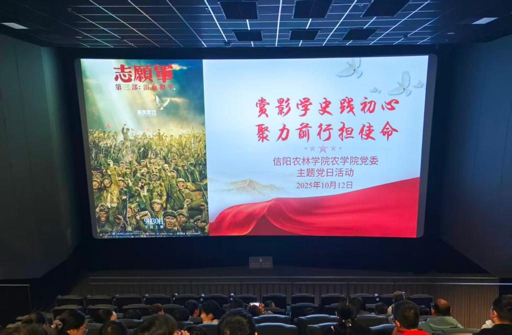 为筑牢理想信念,深化爱国主义教育,10月12日,农学院党委组织全体党员开展“赏影学史践初心 聚力前行担使命”主题党日活动,集中观看抗美援朝题材电影《志愿军:浴血和平》。通过沉浸式观影与交流研讨,引导党员传承红色基因,凝聚奋进力量。