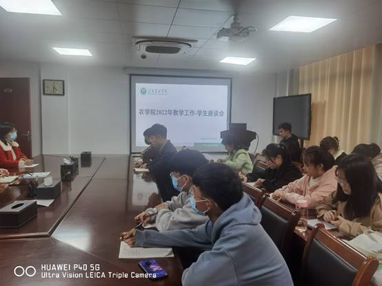 为了提高教育教学质量,加强师生间沟通,了解学生对学院教学工作的建议和意见。2022年11月15日下午在农学院会议室召开了2022年教学工作-学生座谈会,农学院主管教学副院长陈利军、教学秘书徐运飞、教学督导员肖荣英与学院各专业、各年级学生代表进行了座谈。