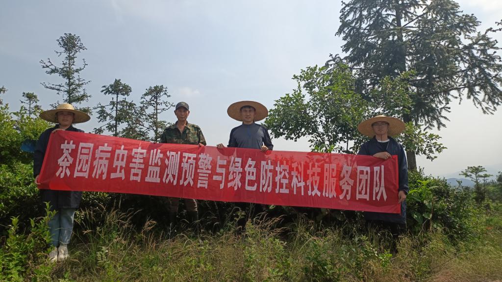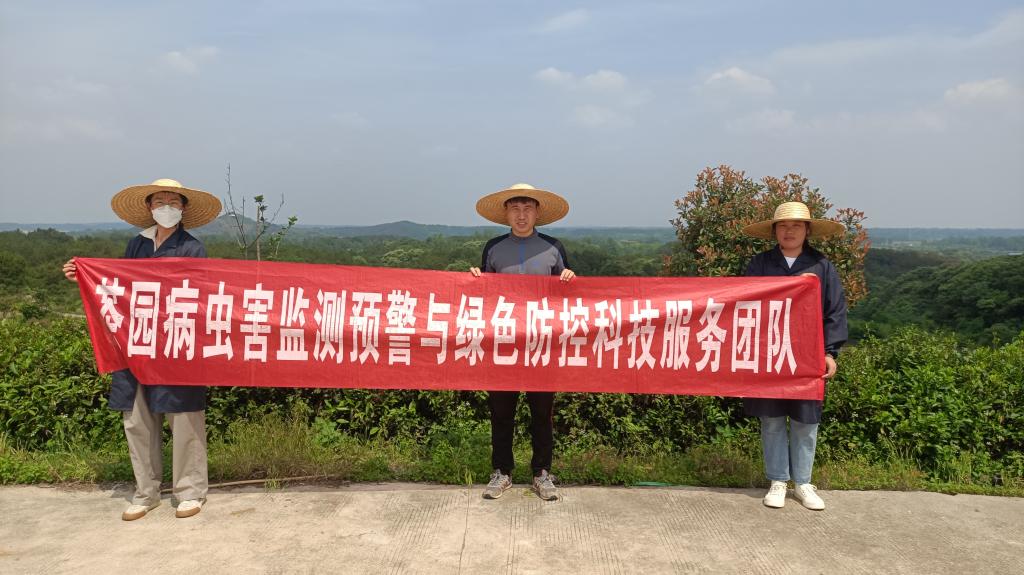 2023年5月19日,茶园病虫害监测预警与绿色防控科技服务团队成员耿书宝博士带领王仕龙、宋君川、孔秋菊等3名学生前往信阳申林茶叶有限开发公司、罗山县亿峰生态林业开发有限公司开展科技服务工作,进行茶树病虫害发生情况的调查工作。
