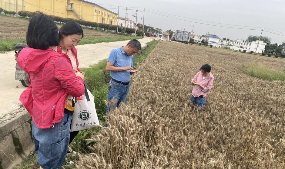6月1-2日,信阳市弱筋小麦产业科技特派员服务团团长孙君艳教授带领团队成员李传保、刘红敏、董丽平,赴息县宏升粮食制品有限责任公司的弱筋小麦种植基地开展科技服务,了解基地小麦收割情况并查看小麦成熟期生长情况。