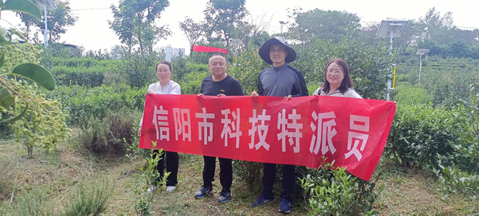 2023年9月7日,信阳市科技特派员耿书宝、乔利带领金银利、逯麒森老师到河南省光山县新天地生态林茶专业合作社进行科技服务。
