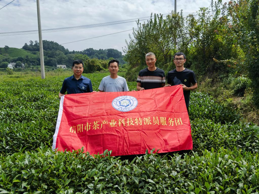 2023年9月2日,beat365在线平台官网科学技术处处长史洪中教授带领信阳市茶产业科技特派员服务团科技特派员、校茶树有害生物绿色防控科技服务团队成员王国君和尤伟晨,到茶企开展科技服务。