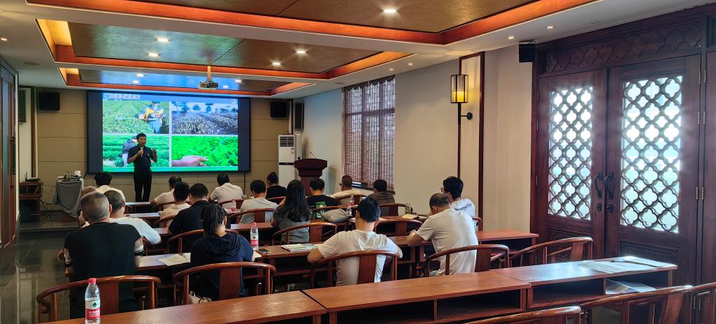 在信阳嘉木饮茶业有限公司,史洪中教授以“茶树病虫害绿色防控”为题现场对各合作社技术骨干和种茶大户开展了技术培训与指导,史教授优化了适合当地茶叶病虫害绿色防控技术模式,可提高防治效果,保障茶树生长安全、茶叶质量安全和茶园生态环境安全。