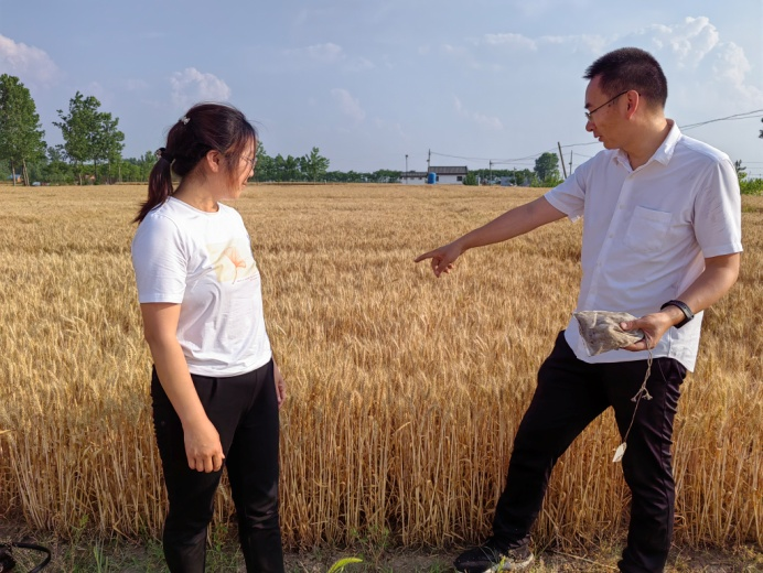 刘合满一行首先来到息县临河乡郑寨村与当地种粮大户进行交流,详细了解了农户开展的玉米、水稻、小麦免耕播种的实践经验、尚存在的主要问题,并协商安排免耕夏播的试验研究工作。随后来到国营息县农场试验基地,实地察看了秸秆覆盖免耕播种条件下的小麦生长及产量情况,对开展的水稻秸秆田间原位分解试验进行采样。