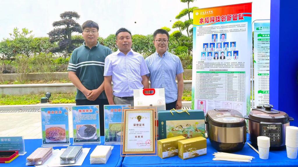 本次启动仪式设置了科技成果展示区,现场人头攒动,气氛热烈。我院水稻科技创新团队精心准备,展示了团队选育的豫南特种稻黑米和红米新品系,并现场烹制了特种稻米饭,阵阵米香吸引了与会嘉宾驻足品尝。同时,团队成员还与参观市民互动交流,讲解品种选育的过程和科技创新内容。此次参加科技活动周启动仪式,不仅展示了我院的专业特色,也展现了我院水稻团队在科技创新方面的成果,使与会者们深刻感受到了科技的魅力和力量。