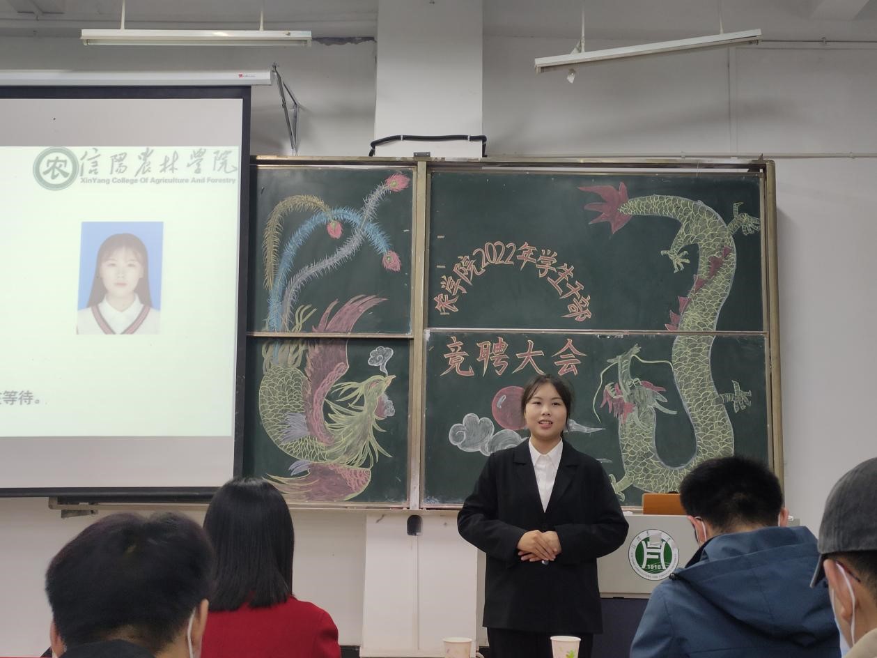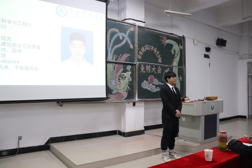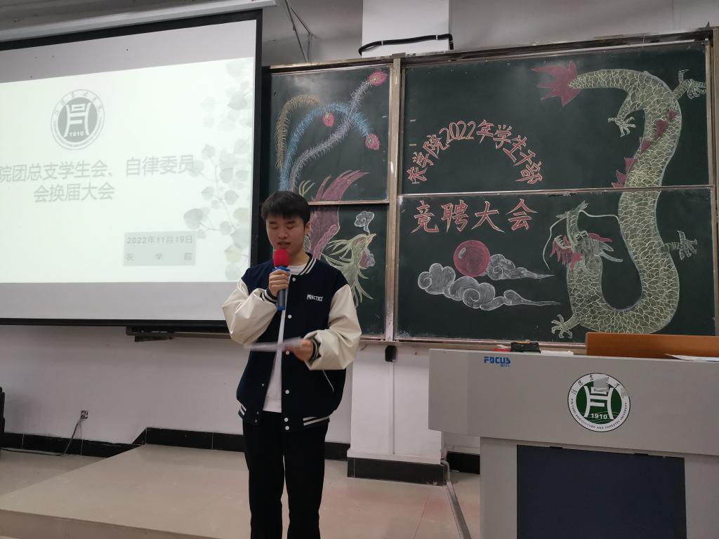 11月19日上午,农学院在一教E102举行团总支、学生会、自律委学生干部换届大会。院党总支副书记王付娟、团总支书记陈磊及学工组老师杨春玲、尤伟晨应邀出席,2020级部分学生干部代表、2022级班长团支书、2021级各部门竞选成员参加。本次活动严格遵守学校疫情防控要求,全员佩戴口罩。