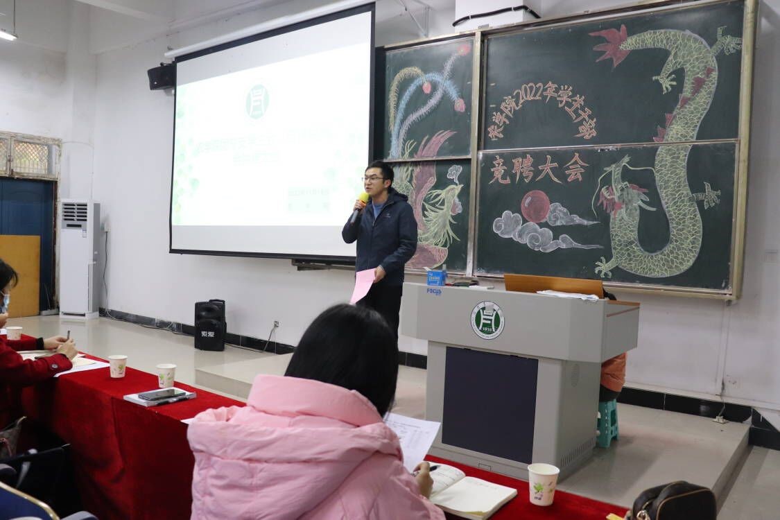 活动伊始,陈磊老师发表开场致辞。他对上一届学生干部的辛勤付出给予高度肯定和感谢。同时,对即将上台竞选的2021级学生干部提出三点殷勤期望:一是正确定位,明确服务宗旨;二是坚持学习,正确引领学生思想;三是团队协作,创新工作方式方法。团总支副书记赵向阳代表老一届学生干部对上一学年学生会工作进行总结,并为新一届成员竞选加油打气。随后,本次换届大会以竞聘演讲的形式拉开帷幕,各部门候选人逐一上台进行竞聘演讲,充分展示自己的能力作风,畅谈在学生自我服务机构的工作感想。