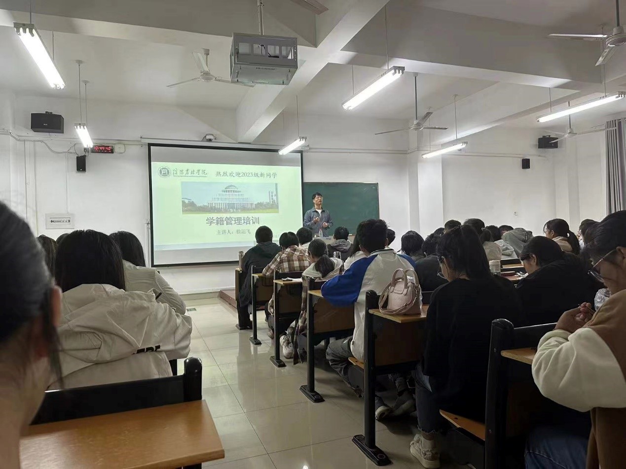 为帮助新生更好地了解beat365在线平台官网学籍管理相关规定,9月26日上午,我院教学秘书徐运飞在二教117开展了关于学籍管理培训的新生入学教育专题培训,我院2023级新生参加。