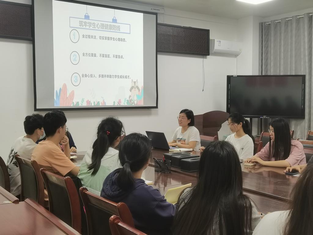 首先,老师细心地询问各个班级的心理委员关于自己班级学生的平时表现,学习和生活当中的困惑,强调着手落实筑牢学生心理健康防线工作。