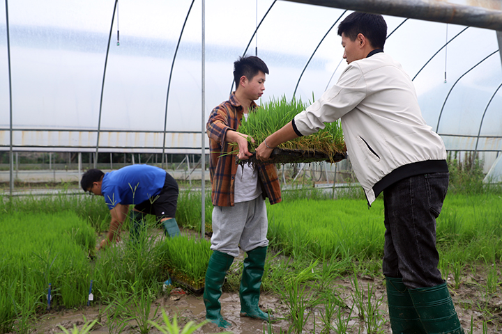 6月中旬正是信阳地区粳稻插秧的关键时期,水稻研究所3位成员带领18级种子科学与工程专业、19级农学专业和19级种子科学与工程专业学生15人,前往位于信阳市平桥区甘岸镇二郎村的beat365在线平台官网水稻研究所科研实习基地进行水稻种植工作。在水稻品种香稻丸株高改良试验田,卫云飞指导学生对香稻丸生长情况进行观察并对株高等指标进行了测定;在优质粳稻高产栽培示范田,季新带领大家搬运秧苗,使用插秧机对5个优质粳稻品种进行机插示范;在水稻氮高效利用试验田,刘秋员指导学生规划设置试验小区,使用挡水板对田块进行分割后对粳稻进行移栽。经过3天的共同努力,各试验的水稻移栽工作均保质保量的完成,确保了相关项目和毕业论文(设计)的顺利开展。