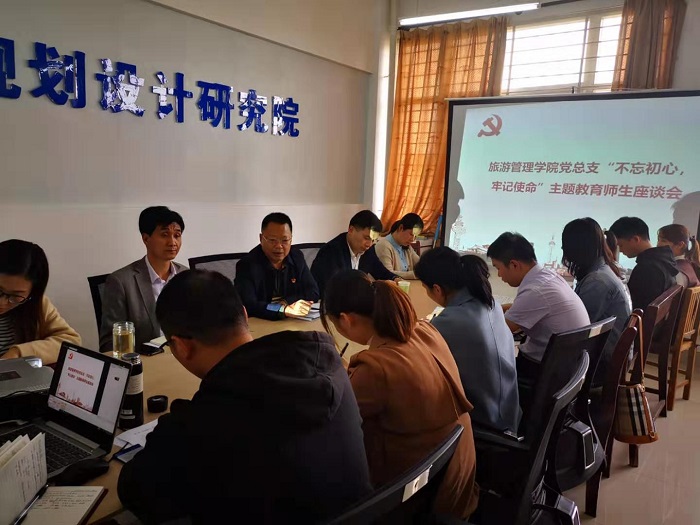 10月31日下午,旅游管理学院党总支在2C506旅游规划设计研究室召开“不忘初心、牢记使命”主题教育师生座谈会。“不忘初心,牢记使命”主题教育校级第二督导组组长胡凤堂、成员陈帅名及学院领导和师生党员代表参加本次座谈会,座谈会由院长刘开华主持。