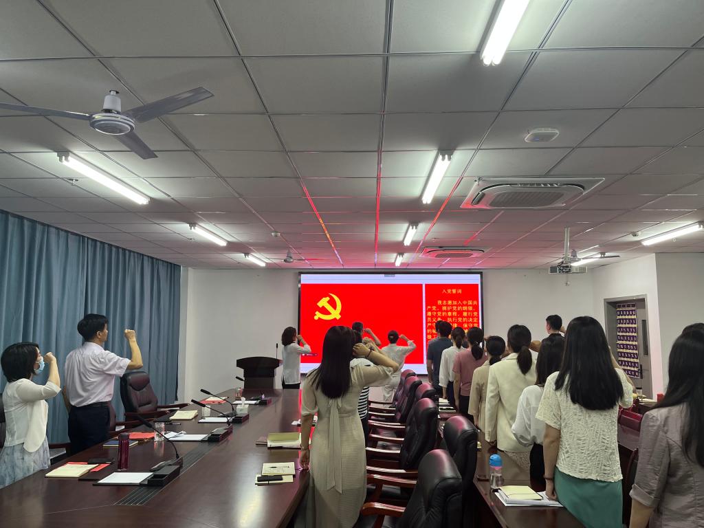 会议在庄重肃穆的国际歌中拉开帷幕。首先陈婷同志宣读了新发展党员名单。随后,在余兵同志的领誓下,全体党员面向党旗庄严宣誓,铿锵有力的誓言让每一位党员坚定了初心使命,强化了责任担当。老党员代表、新党员代表和入党积极分子代表分别发言,他们通过讲述自身的入党初心,希望同学们在日常学习和工作中,时刻牢记党员身份,坚持提升自己的思想政治修养,牢记全心全意为人民服务的宗旨,在良好的学风、班风、校风建设和服务师生方面发挥模范带头的作用。