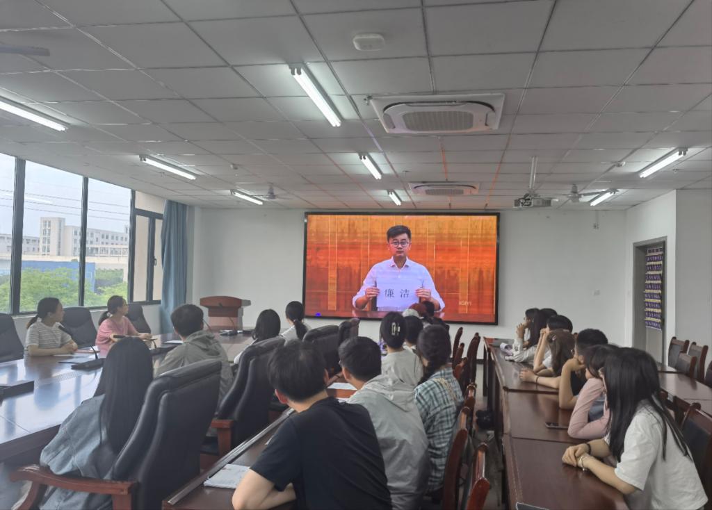 党总支副书记池水婧表示,毕业廉洁教育是学生清廉教育体系的关键一环和“最后一课”,毕业生学生干部、党员即将步入社会、走上工作岗位,希望大家能够强定力、存戒惧、守底线,扣好廉洁第一粒扣子,在今后的工作中守住思想之“魂”,补足精神之“钙”,算好“人生账”,正确对待利益,筑牢防腐拒变的防线,自觉遵守中央八项规定及其实施细则精神和六大纪律,做一个自重自警自省的人,在未来的人生道路上行稳致远。(撰稿/张音音 摄影/张音音)