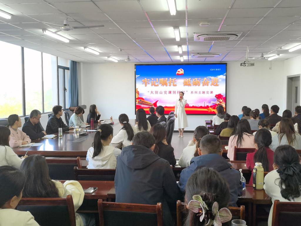 本次主题党日活动邀请光山县红色文化宣传教育中心宣讲队以讲述“大别山党课别样红”系列主题党课形式开展。分为四个部分:《千里跃进传薪火铁面执纪铸军魂》讲述刘邓大军千里跃进大别山“约法三章 从严治军”,彰显人民军队始终扎根人民、取信于民。《海棠绽放纸短情长》展现周恩来与邓颖超两位老革命家之间的往来通信,生动诠释他们感人至深的同志情、战友情和伴侣情。《永远的丰碑》讲述平均年龄只有16岁的光山匡氏八兄弟舍命当红军的故事,特写老区人民一心向党、永跟党走的坚定信念和牺牲精神。《牢记嘱托砥砺奋进》重温习近平总书记对大别山儿女的殷殷嘱托,激发党员干部干事创业的激情。