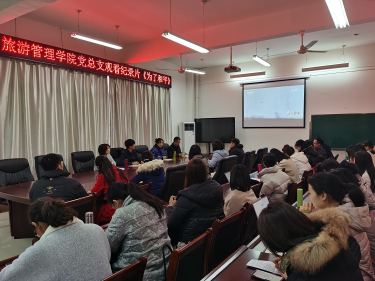为深入贯彻落实习近平总书记在纪念中国人民志愿军抗美援朝出国作战70周年大会上的重要讲话精神,进一步推动我院师生深入开展“四史”学习教育,弘扬伟大的抗美援朝精神,加强新时代爱国主义教育,教育引导全校师生厚植爱国主义情怀,根据学校《关于组织全体师生观看大型电视纪录片《为了和平》的通知》文件要求。11月24日下午,旅游管理学院党总支组织教职工观看学习了大型电视纪录片《为了和平》。