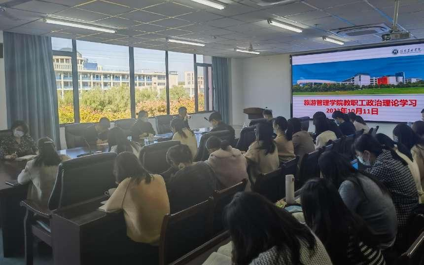 10月11日下午,旅游管理院党总支在双创中心310会议室开展教职工政治理论学习会。会议由党总支副书记杜丽主持,全体教职工参会。